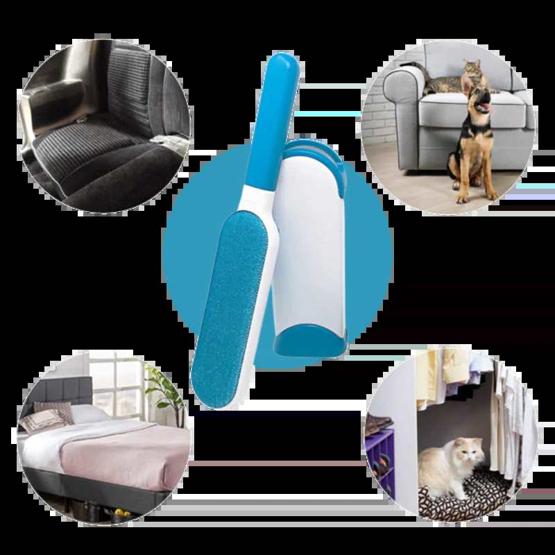 El cepillo quitapelos para mascotas funciona para los problemas de pelos pegados y pérdida de pelo de las mascotas en casa, en su coche o incluso en la oficina o cuando viaja. No daña la ropa, el mobiliario, las alfombras u otras superficies donde se utiliza.