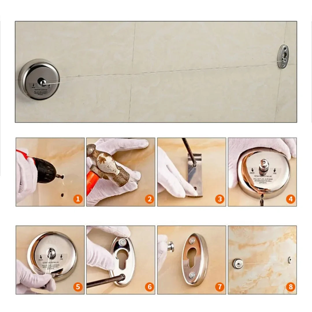- 1 x Tendedero retráctil de acero inoxidable